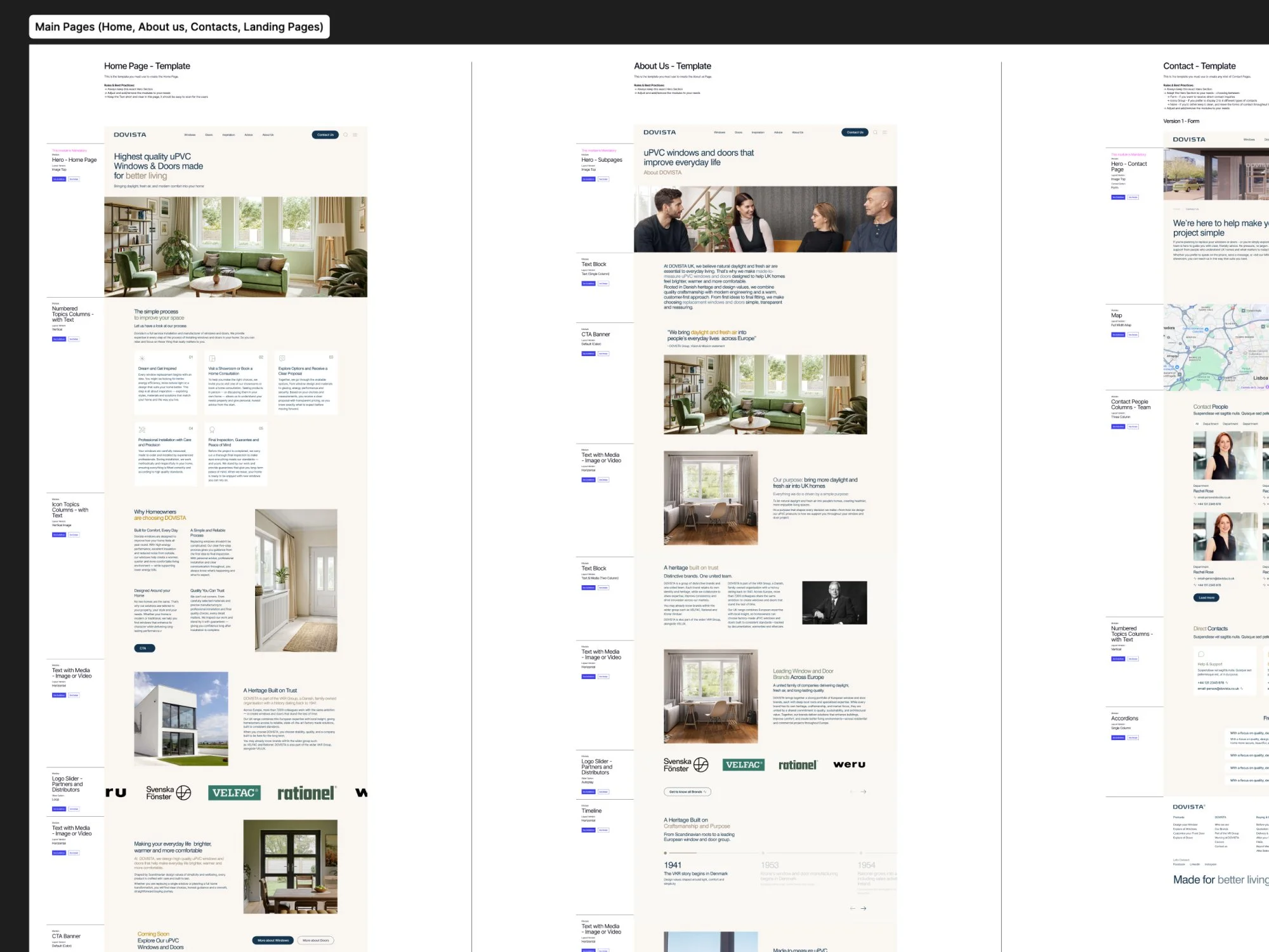 Im Projekt verantwortete ich die Designkonzeption sowie den Aufbau eines modularen Figma-Designsystems für die neue Webplattform von DOVISTA A/S. Dazu gehörten die Entwicklung von Layouts, Komponenten und Typografie-Guidelines sowie die Definition modularer Seitenbausteine für unterschiedliche Seitentypen.