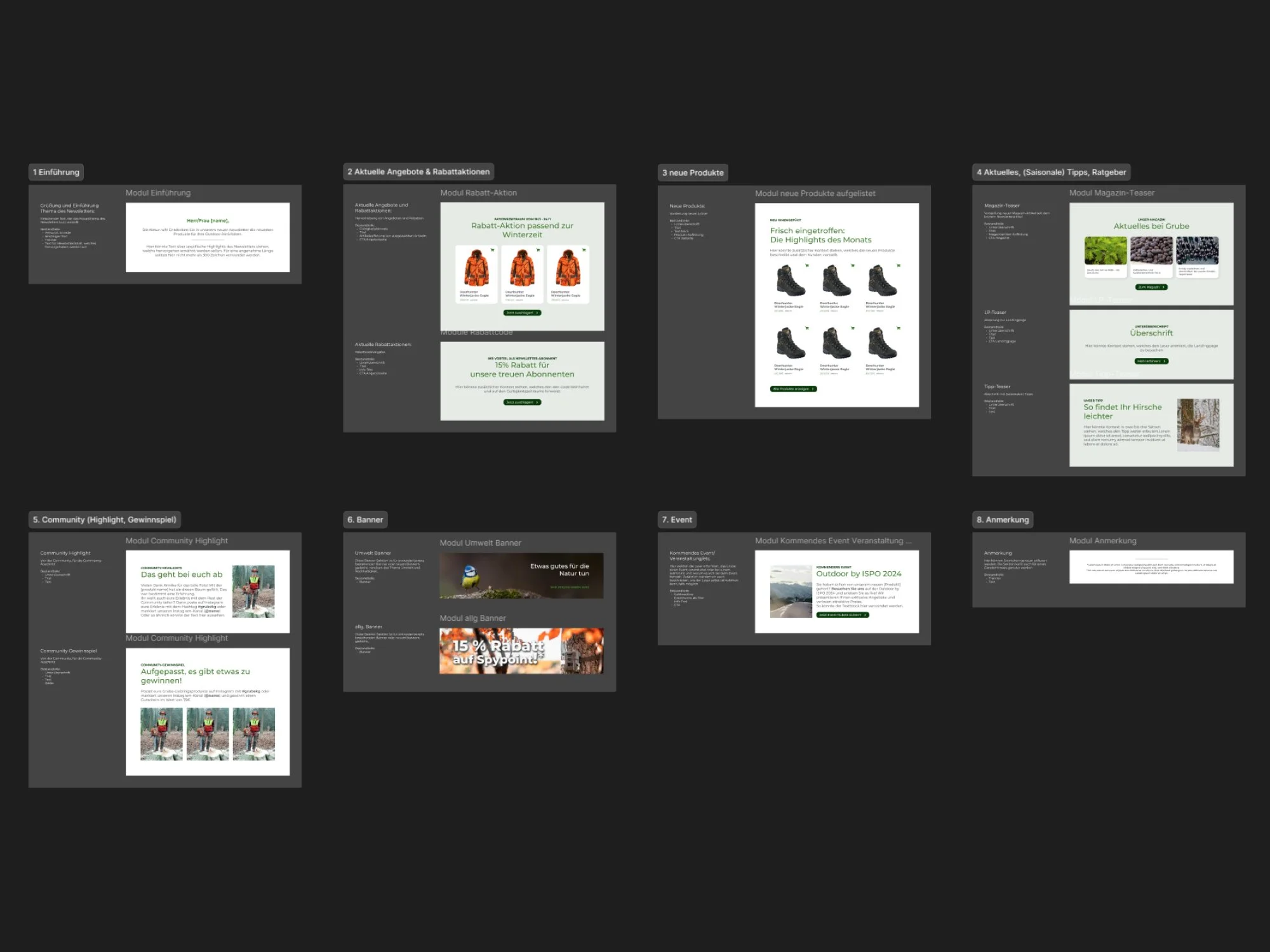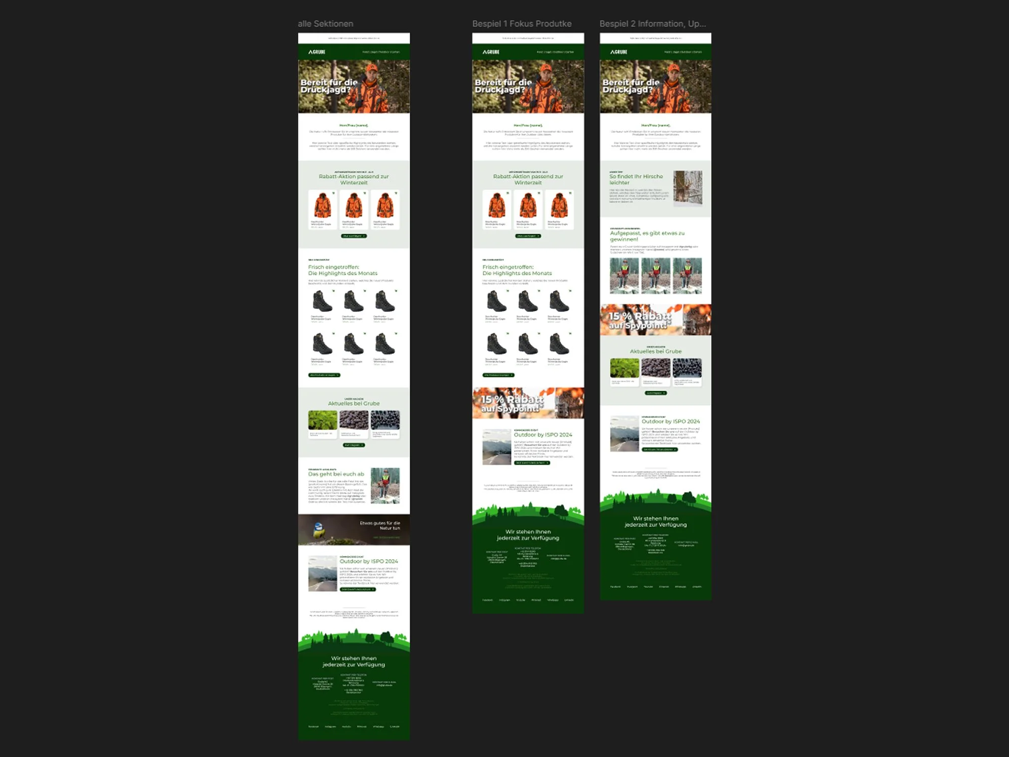 Das Ergebnis ist ein modular aufgebautes Newsletter-Template, das Marketinginhalte konsistent abbilden kann und gleichzeitig genügend Flexibilität für unterschiedliche Kampagnen bietet.