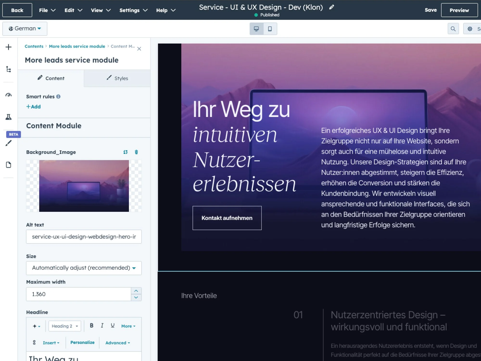 Für neue oder angepasste Inhalte arbeitete ich teilweise in Abstimmung mit dem Content-Marketing-Team. Visuelle Assets wie Icons, Grafiken oder Bildmaterial wurden von mir erstellt oder angepasst.