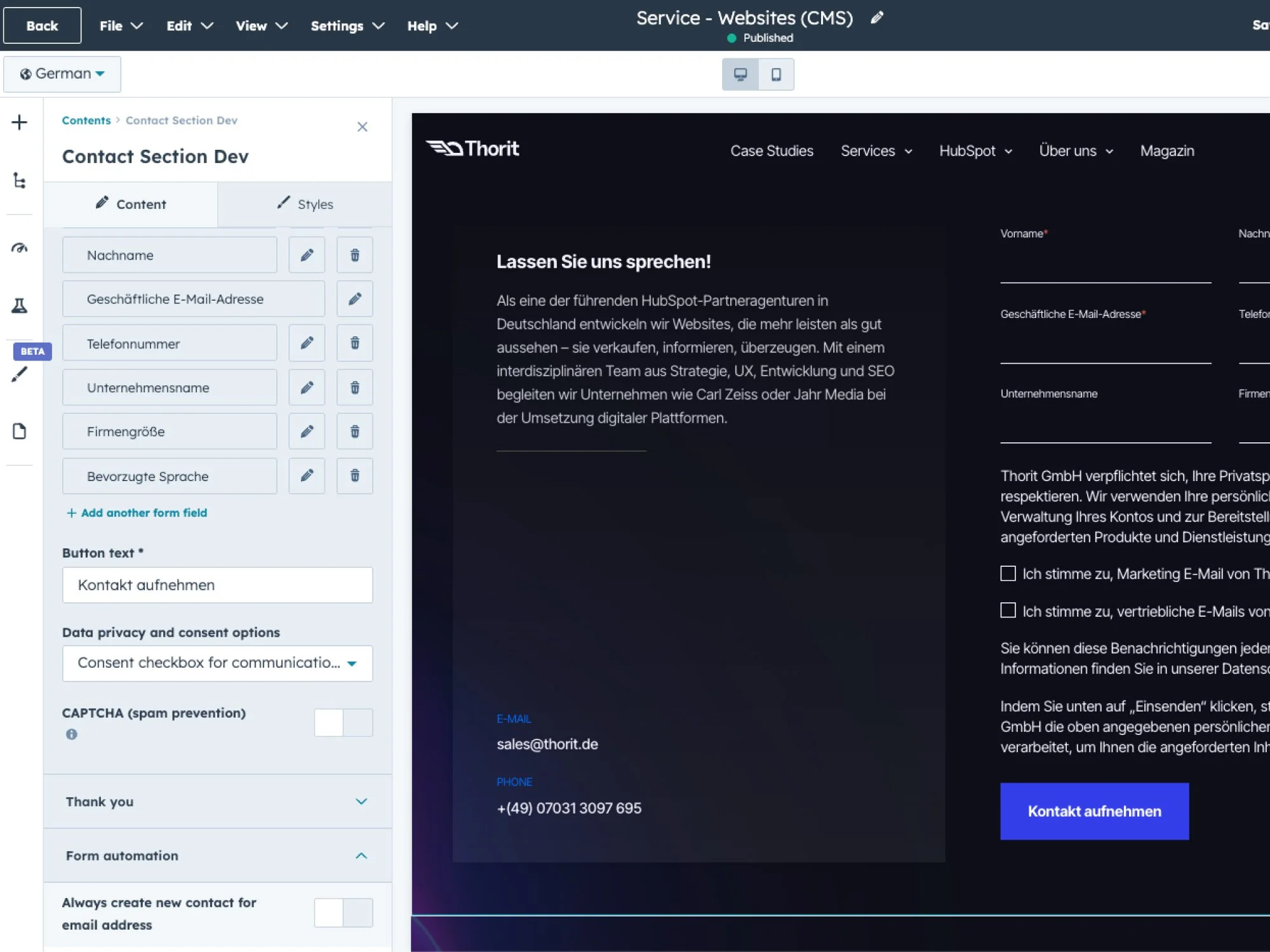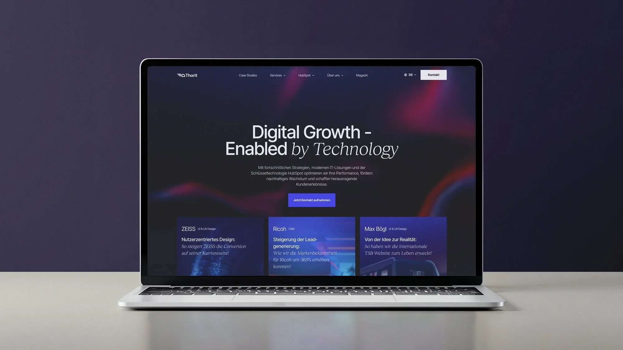 Der Website-Relaunch von Thorit entstand im Zuge eines Rebrandings und sollte das Unternehmen visuell moderner präsentieren sowie die Leistungen klarer strukturieren. Die gestalterischen Grundlagen wurden extern entwickelt, während die technische Umsetzung durch das interne Development-Team erfolgte.